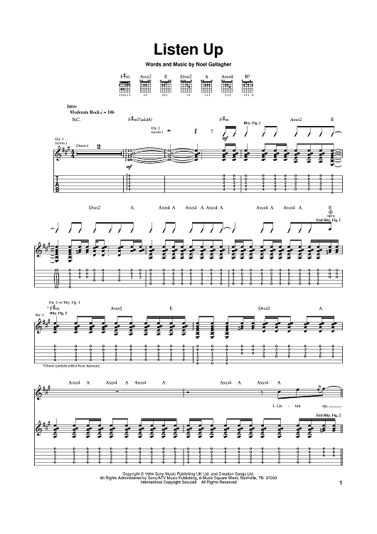 Digital Sheet Music for Listen Up by Noel Gallagher, Oasis scored for Guitar Tab; id:371075