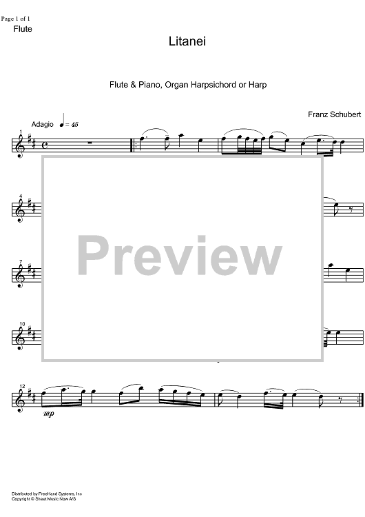Digital Sheet Music for Litanei auf das Fest Allerseelen D343 - Flute by Franz Schubert, SMN Archive Collection scored for Flute/Piano; id:325361