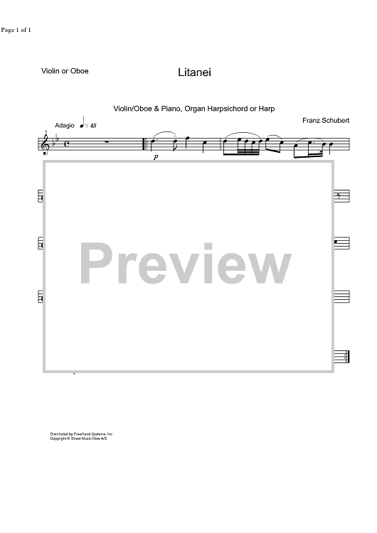 Digital Sheet Music for Litanei auf das Fest Allerseelen D343 - Oboe by Franz Schubert, SMN Archive Collection scored for Oboe/Piano; id:325373