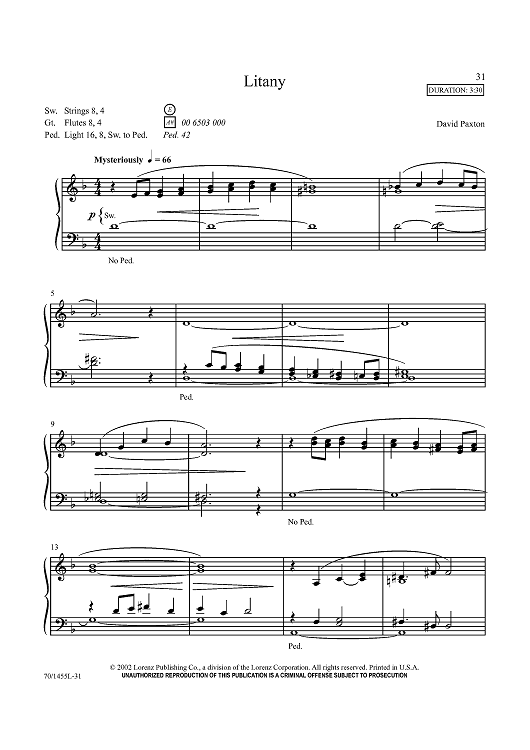 Digital Sheet Music for Litany by David Paxton scored for Organ; id:433734