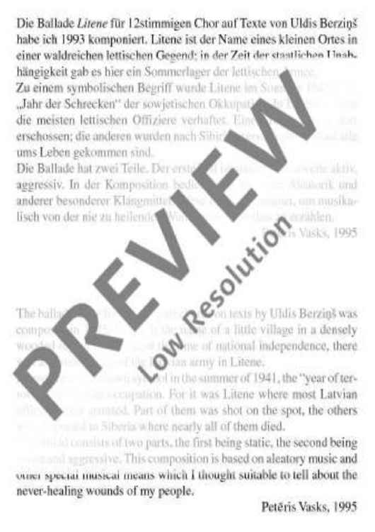 "Litene - Choral Score" Sheet Music by Peteris Vasks
