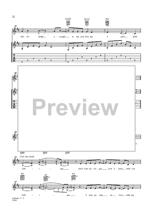 Digital Sheet Music for Lithium by Evanescence, Amy Lee scored for Guitar Tab/Vocal; id:360503