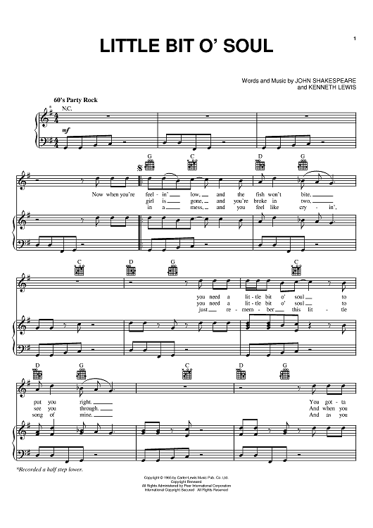 Digital Sheet Music for Little Bit O' Soul by Kenneth Lewis, The Music Explosion, John Shakespeare scored for Piano/Vocal/Chords; id:398071