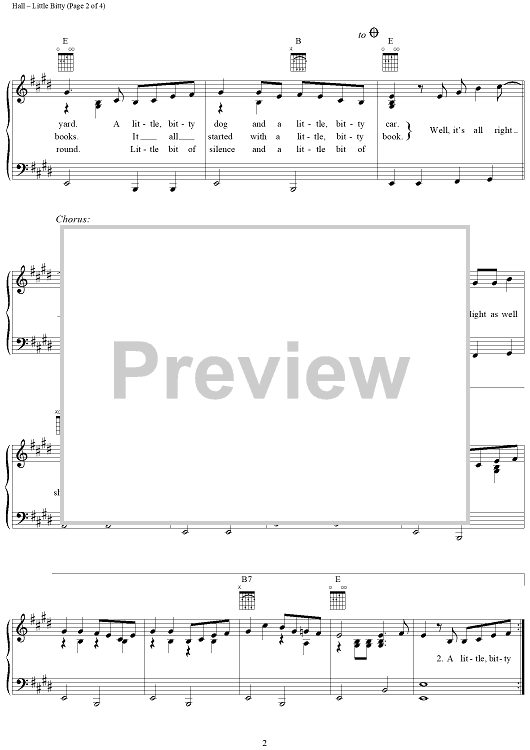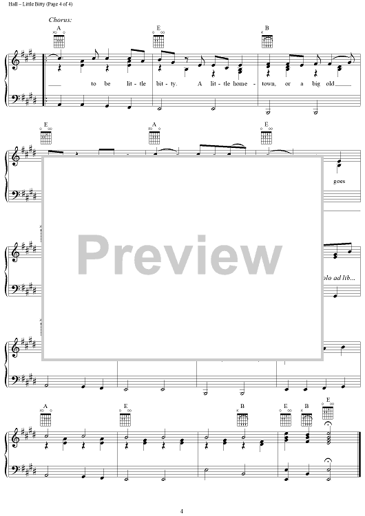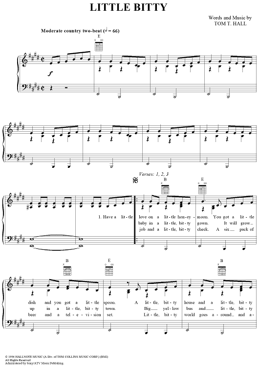 Digital Sheet Music for Little Bitty by Tom T. Hall, Al Jackson Jr scored for Piano/Vocal/Chords; id:112024