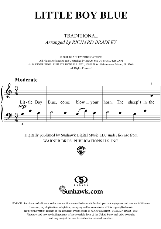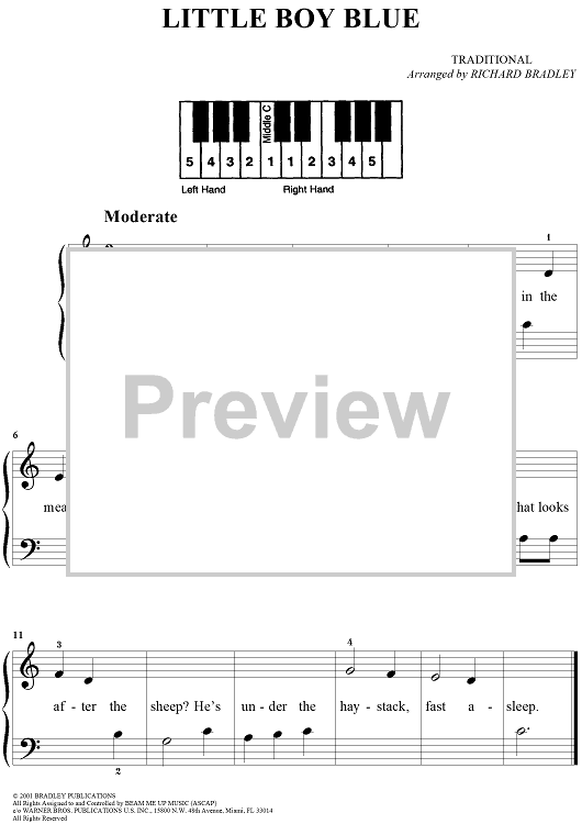 Digital Sheet Music for Little Boy Blue by Richard Bradley, Traditional scored for Five Finger Piano; id:283377