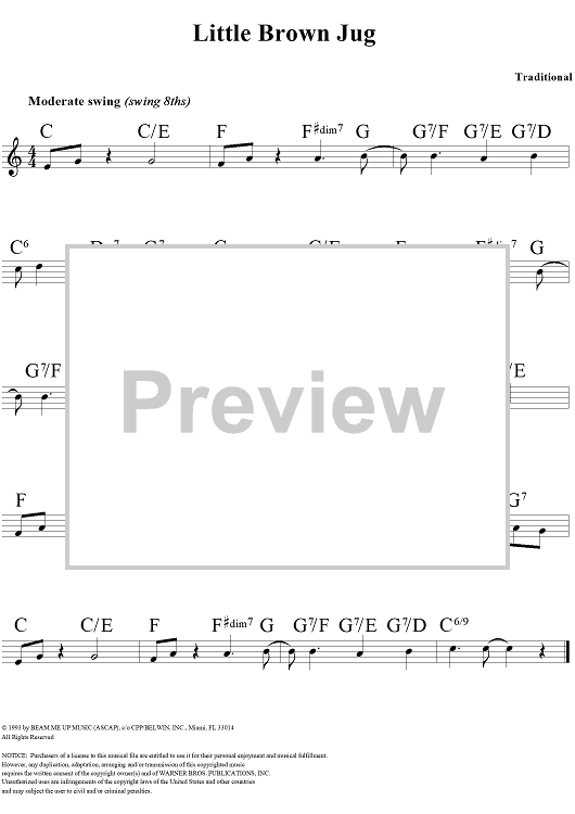 Digital Sheet Music for Little Brown Jug by Glenn Miller, Traditional scored for Lead Sheet; id:109406