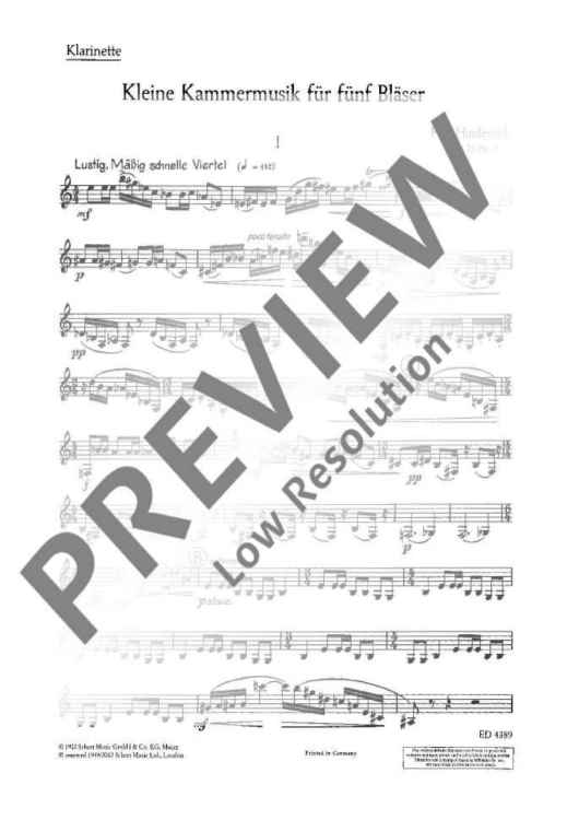 "Little Chamber Music - Set of Parts" Sheet Music by Paul Hindemith