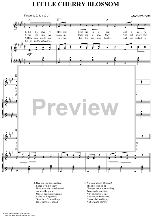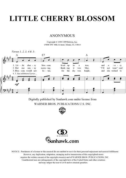Digital Sheet Music for Little Cherry Blossom by Unknown Writer scored for Piano/Vocal/Chords; id:277283