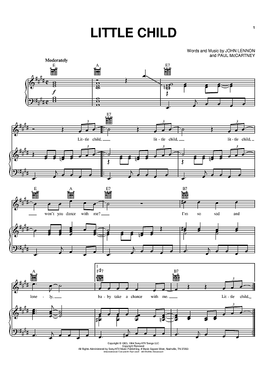 Digital Sheet Music for Little Child by Paul McCartney, The Beatles, John Lennon scored for Piano/Vocal/Chords; id:394798