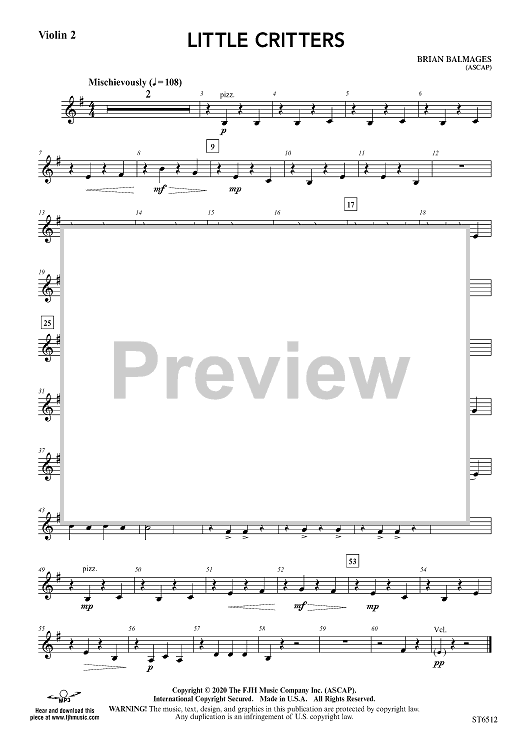 Digital Sheet Music for Little Critters - Violin 2 by Brian Balmages scored for String Orchestra; id:500926