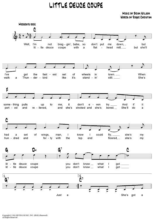 Digital Sheet Music for Little Deuce Coupe by Brian Wilson, The Beach Boys, Hot Dog Rog scored for Lead Sheet; id:289974
