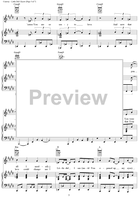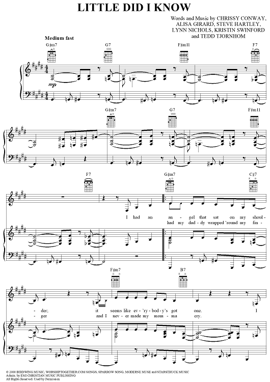 Digital Sheet Music for Little Did I Know by Tedd T, Steve Hartley, Chrissy Conway, Alisa Girard, Lynn Nichols, Kristin Swinford scored for Piano/Vocal/Chords; id:367559