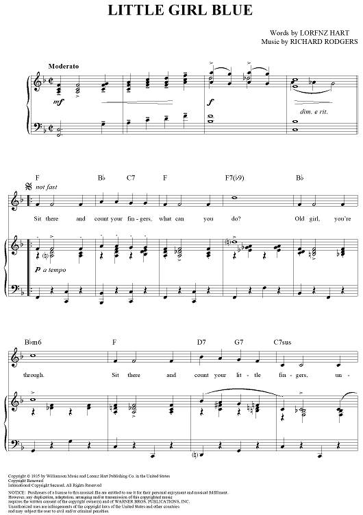 Digital Sheet Music for Little Girl Blue by Richard Rodgers, Lorenz Hart scored for Piano/Vocal/Chords; id:355968