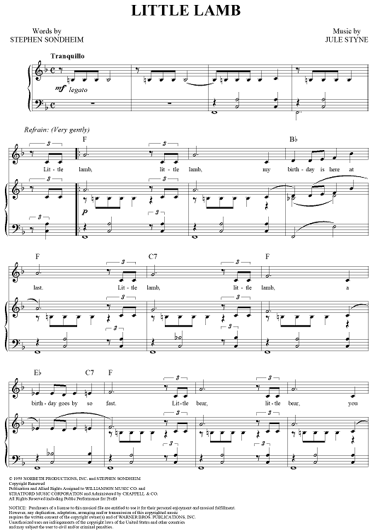 Digital Sheet Music for Little Lamb by Stephen Sondheim, Jule Styne scored for Piano/Vocal/Chords; id:297806