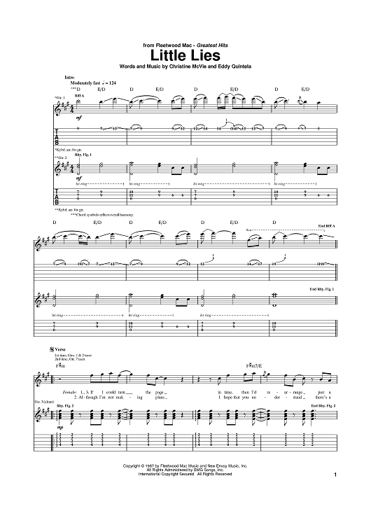 Digital Sheet Music for Little Lies by Eddy Quintela, Fleetwood Mac, Christine McVie scored for Guitar Tab; id:384418
