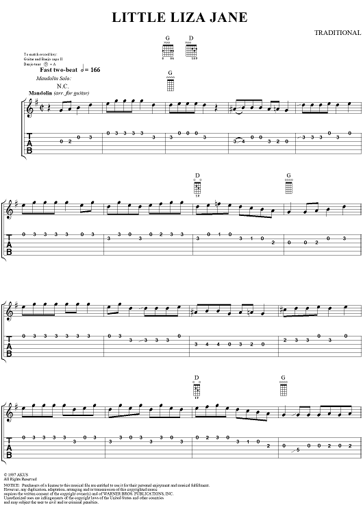 Digital Sheet Music for Little Liza Jane by Alison Krauss & Union Station, Traditional scored for Banjo/Guitar Tab; id:259982
