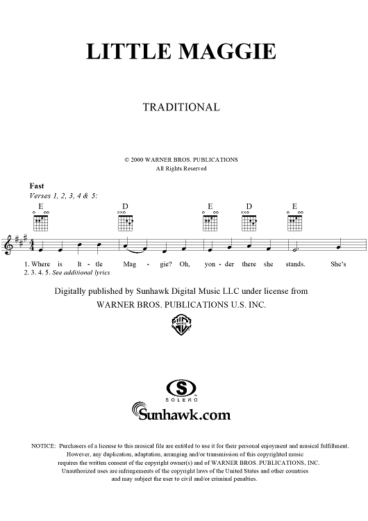 Digital Sheet Music for Little Maggie by Traditional scored for Lead Sheet; id:292621