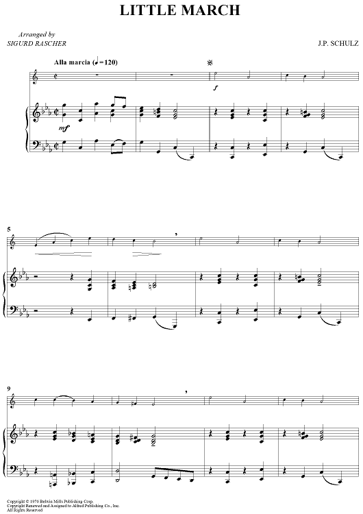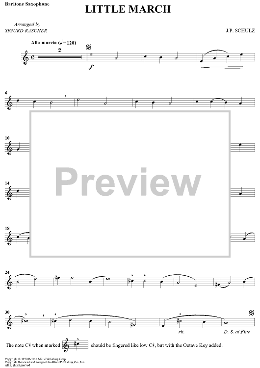 Digital Sheet Music for Little March by Johann Abraham Peter Schulz, Sigurd Rascher scored for Eb Baritone Sax/Piano; id:434498
