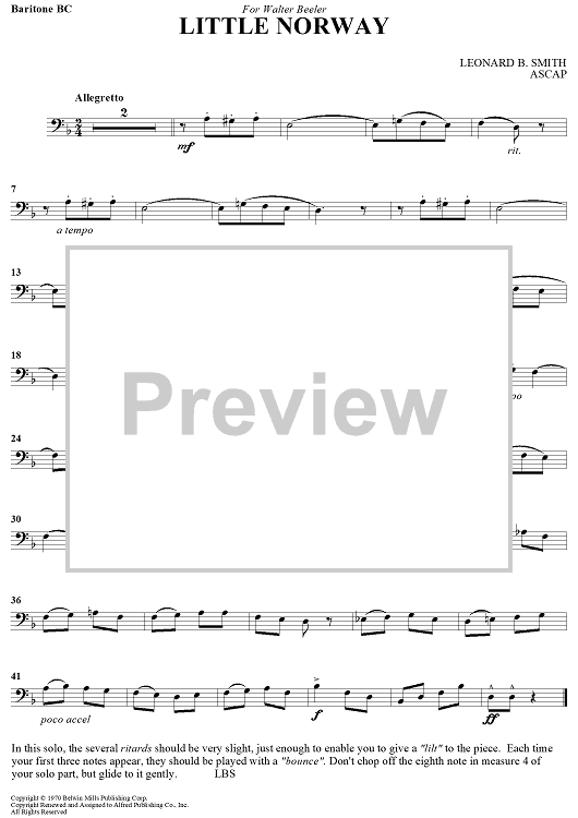 Digital Sheet Music for Little Norway by Leonard B. Smith scored for Baritone BC/Piano; id:437930