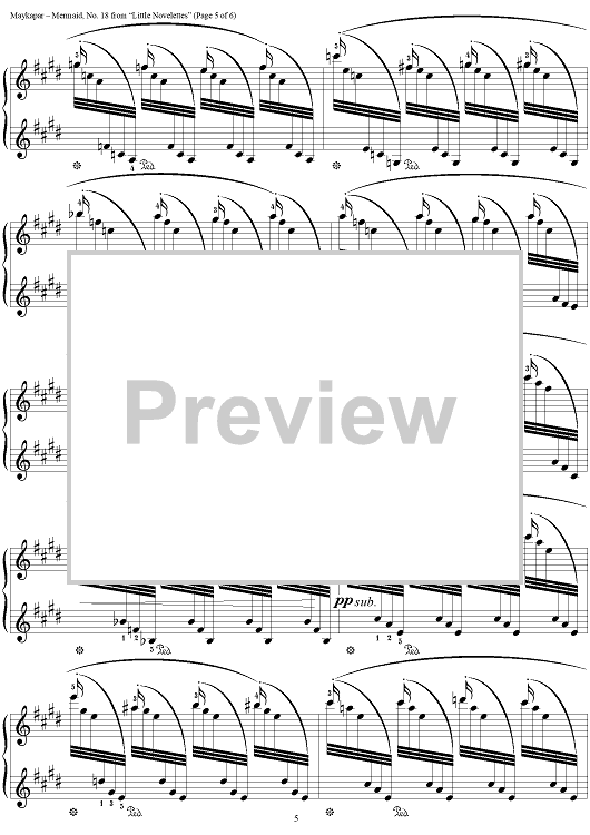 Digital Sheet Music for Little Novelettes. 18. Mermaid by , Samuel Maykapar scored for Piano Solo; id:365405