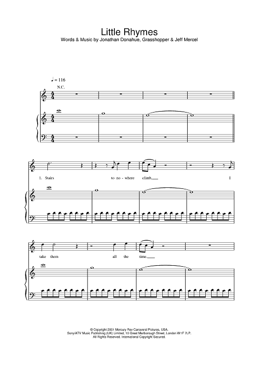 Digital Sheet Music for Little Rhymes by Jonathan Donahue, Mercury Rev scored for Piano/Vocal/Chords; id:380182