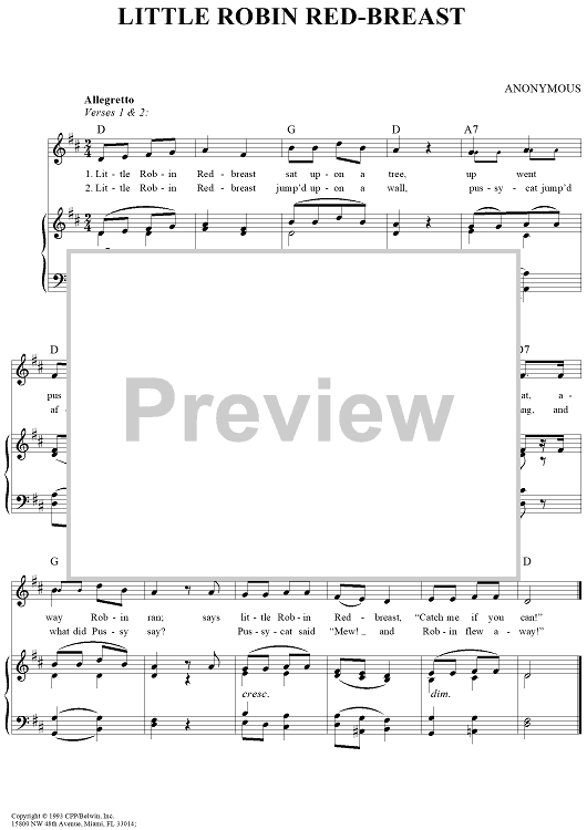 Digital Sheet Music for Little Robin Red-Breast by Unknown Writer scored for Piano/Vocal/Chords; id:277282