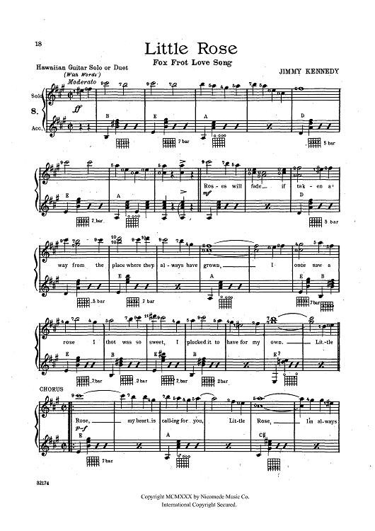 Digital Sheet Music for Little Rose by , Jimmy Kennedy, Paula Nahiku scored for Hawaiian Guitar; id:429424