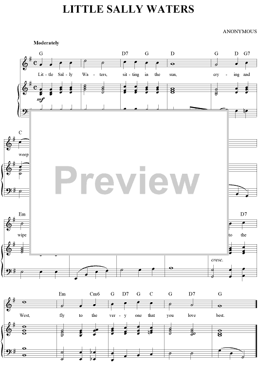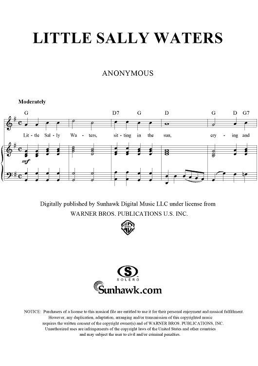 Digital Sheet Music for Little Sally Waters by Unknown Writer scored for Piano/Vocal/Chords; id:277268