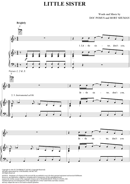 Digital Sheet Music for Little Sister by Doc Pomus, Mort Shuman, Dwight Yoakam scored for Piano/Vocal/Chords; id:254965