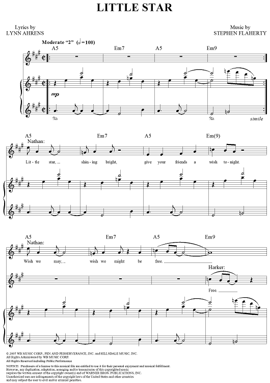 Digital Sheet Music for Little Star by Stephen Flaherty, Lynn Ahrens scored for Piano/Vocal/Chords; id:314691