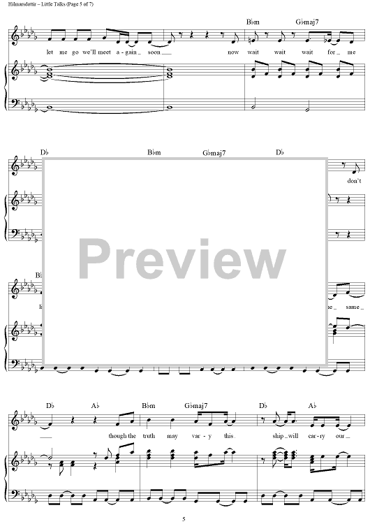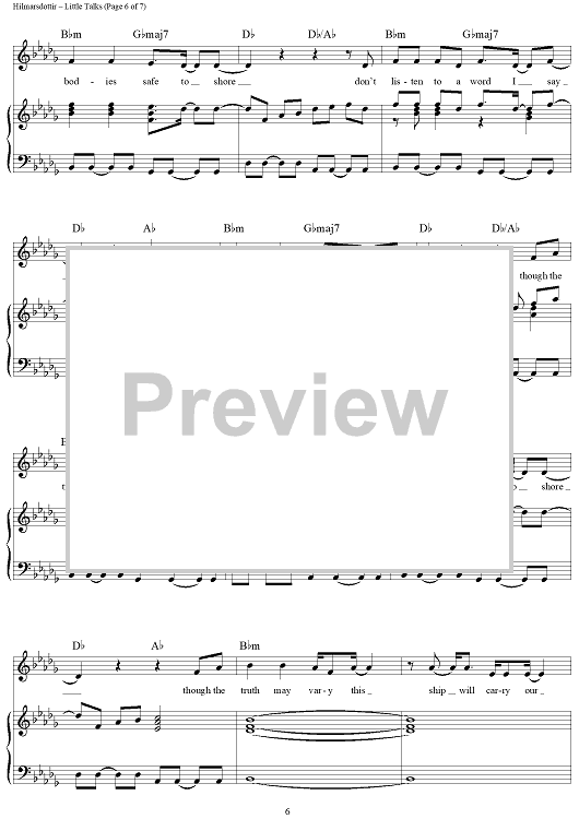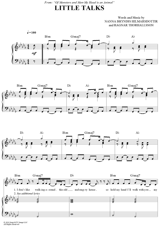 Digital Sheet Music for Little Talks by Nanna Bryndis Hilmarsdottir, Ragnar Thorhallsson, Of Monsters and Men scored for Piano/Vocal/Chords; id:430245