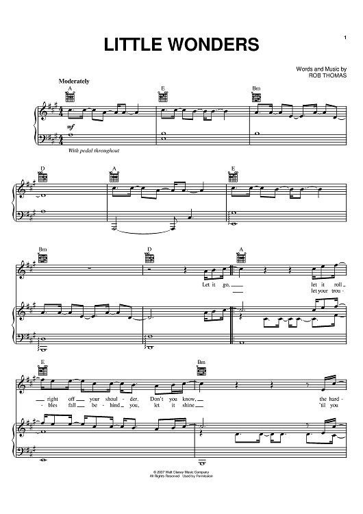 Digital Sheet Music for Little Wonders by Rob Thomas scored for Piano/Vocal/Chords; id:397407