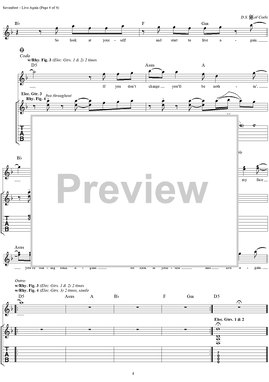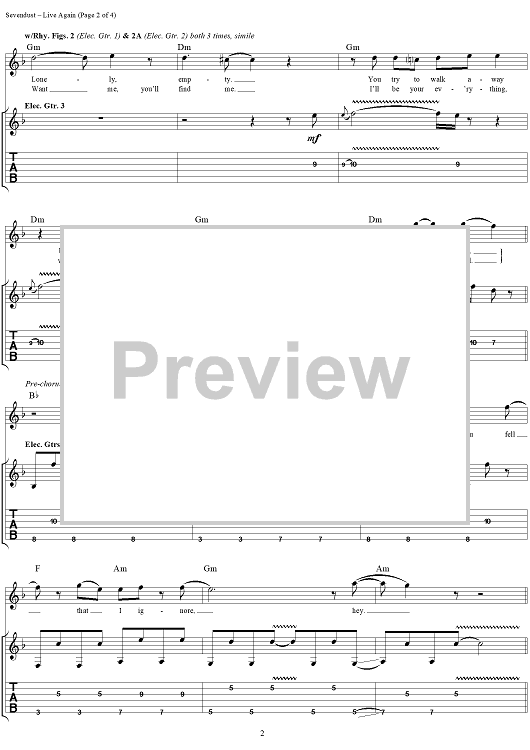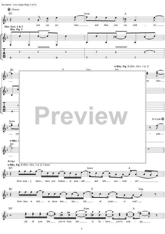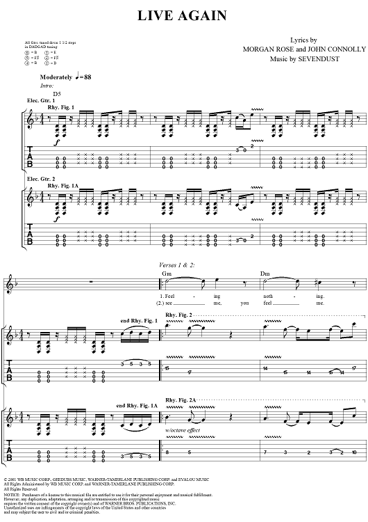 Digital Sheet Music for Live Again by Sevendust, Morgan Rose, John Connolly scored for Guitar Tab/Vocal; id:289671