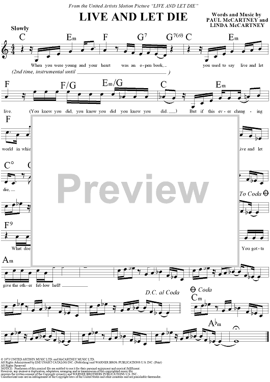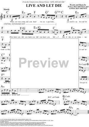 Digital Sheet Music for Live and Let Die by Paul McCartney, Linda McCartney, Wings scored for Lead Sheet; id:109243