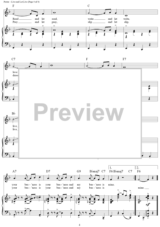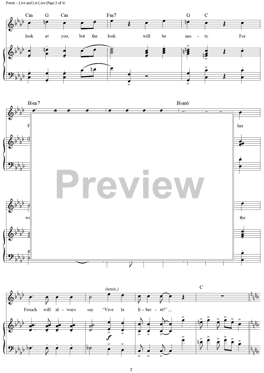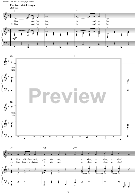 Digital Sheet Music for Live and Let Live by Cole Porter scored for Piano/Vocal/Chords; id:314753