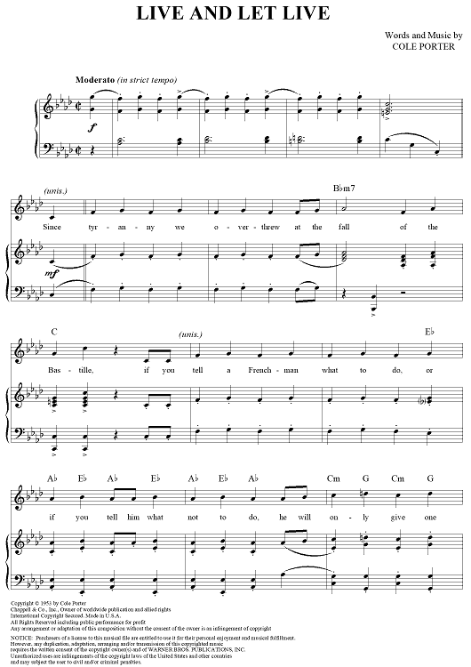 "Live and Let Live" Sheet Music by Cole Porter
