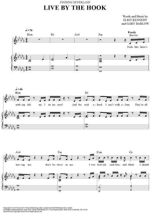 "Live By The Hook - from Finding Neverland" Sheet Music by Gary Barlow