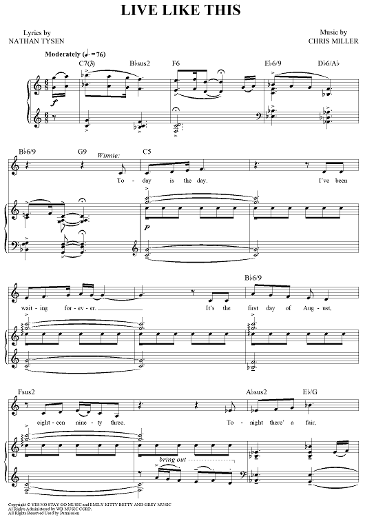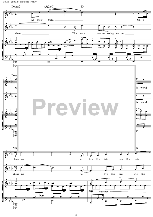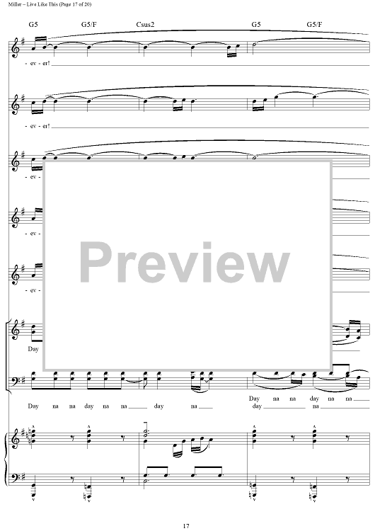 Digital Sheet Music for Live Like This by Chris Miller, Nathan Tysen scored for Piano/Vocal/Chords; id:463398