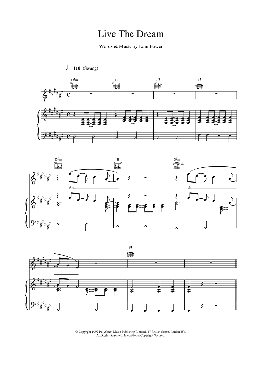Digital Sheet Music for Live The Dream by Cast scored for Piano/Vocal/Chords; id:376417