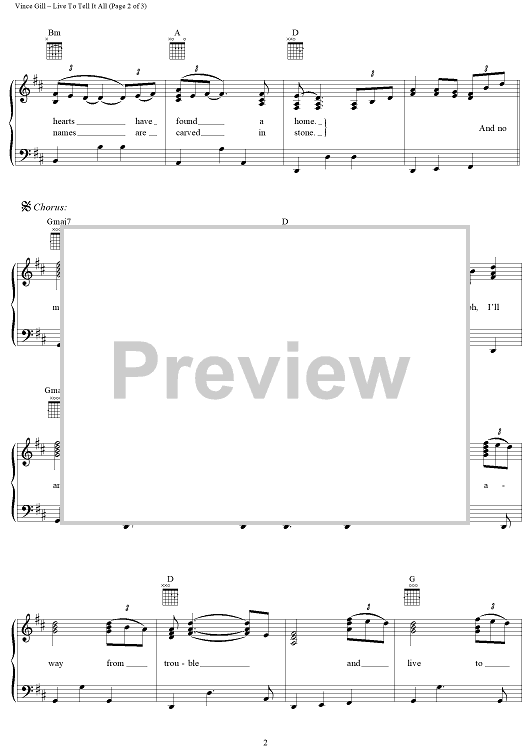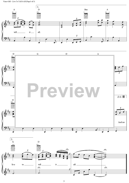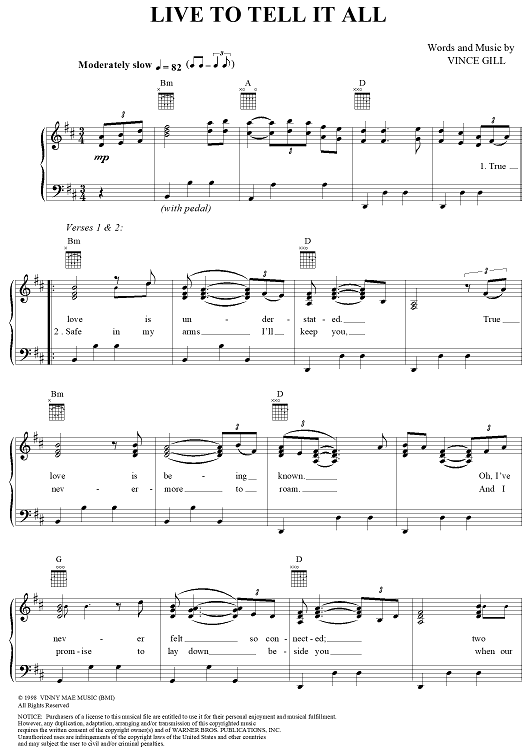 Digital Sheet Music for Live To Tell It All by Vince Gill scored for Piano/Vocal/Chords; id:268451