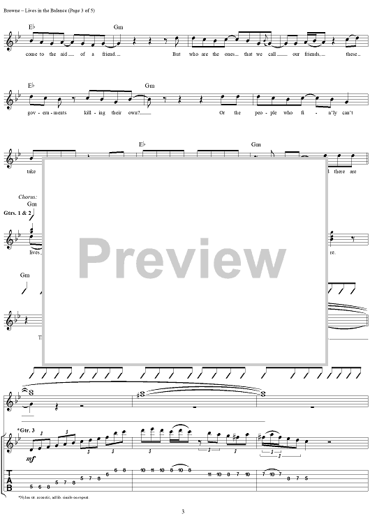 Digital Sheet Music for Lives in the Balance by Jackson Browne scored for Guitar Tab/Vocal; id:274470
