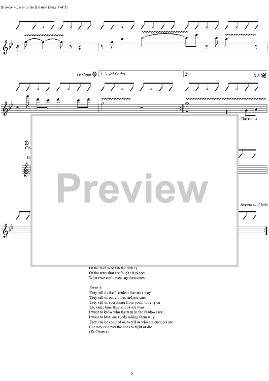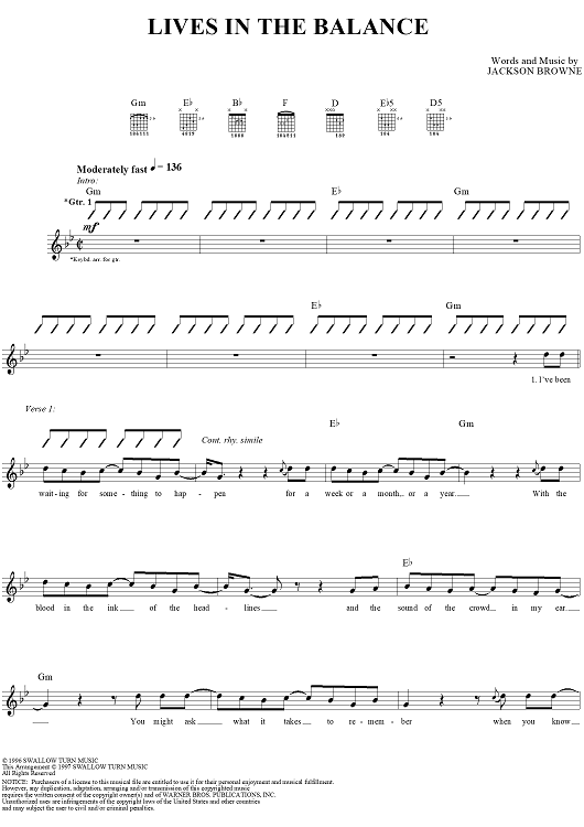 "Lives in the Balance" Sheet Music by Jackson Browne