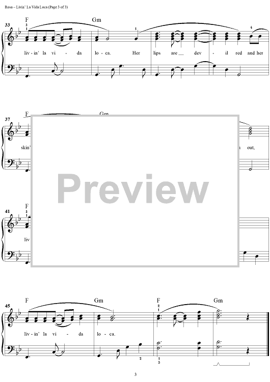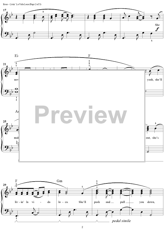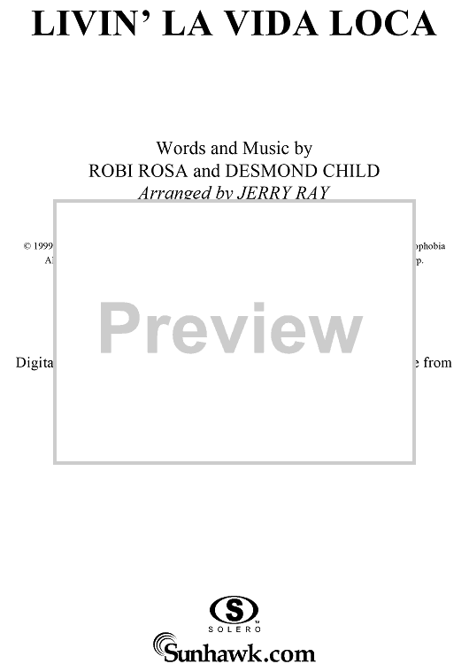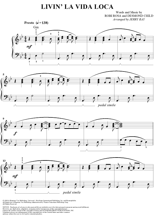 Digital Sheet Music for Livin' La Vida Loca by Jerry Ray, Desmond Child, Robi Rosa, Ricky Martin scored for Easy Piano/Vocal; id:289446