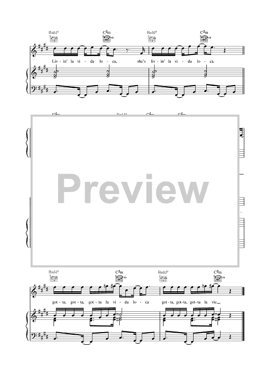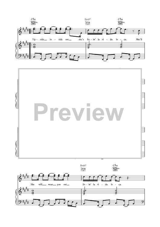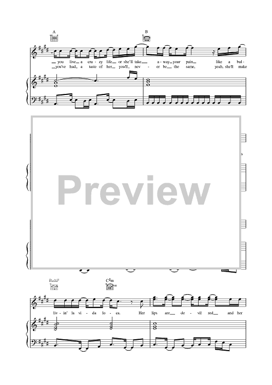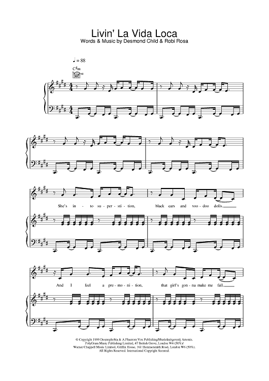 Digital Sheet Music for Livin' La Vida Loca by Ricky Martin scored for Piano/Vocal/Chords; id:379087