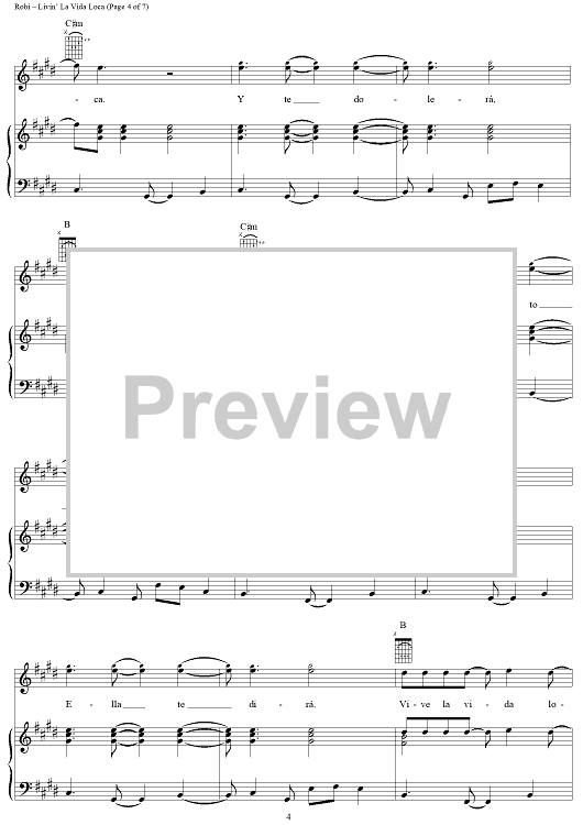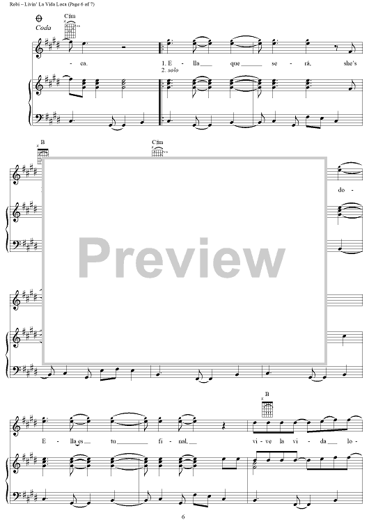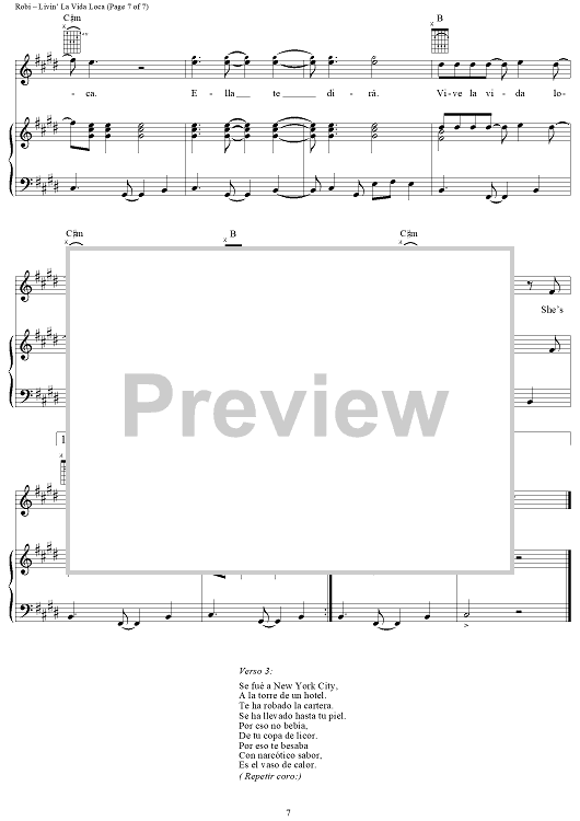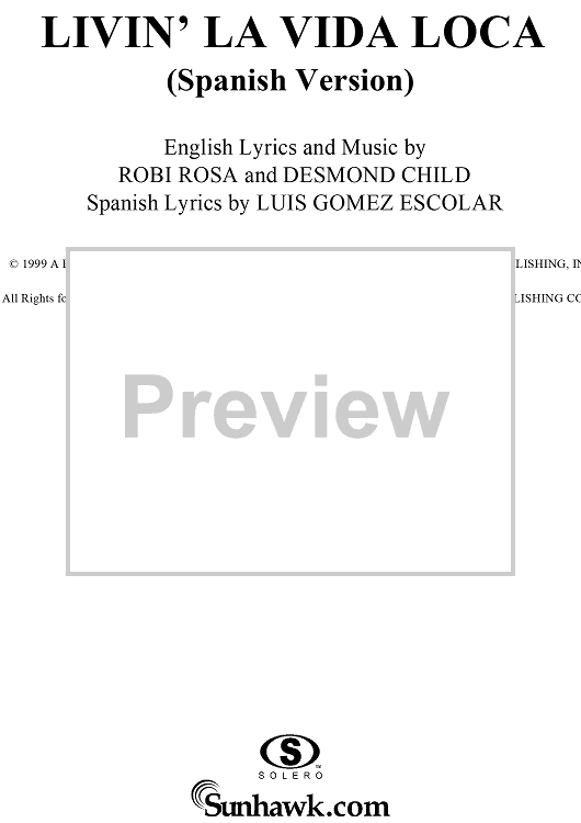 "Livin' La Vida Loca (Spanish Version)" Sheet Music by Ricky Martin