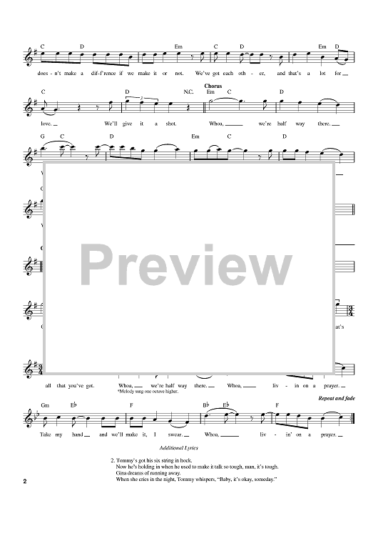 "Livin' On A Prayer" Sheet Music by Bon Jovi