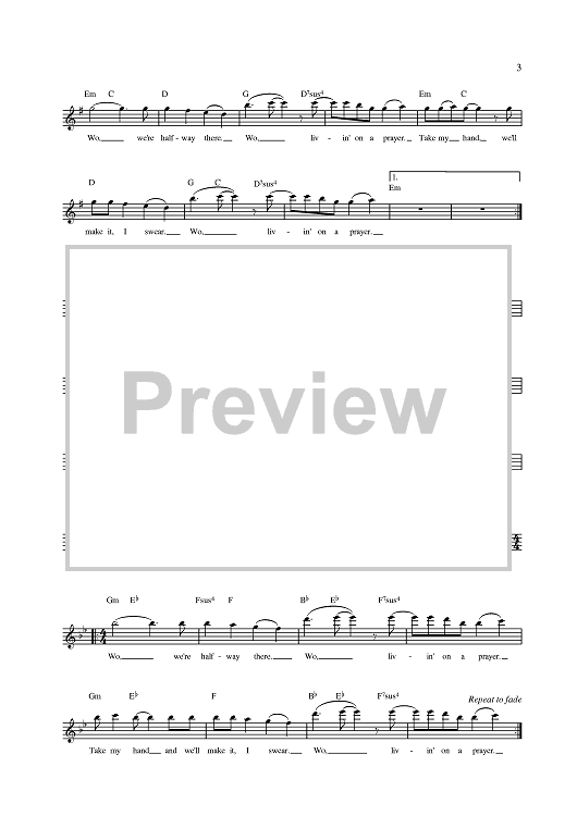 Digital Sheet Music for Livin' On A Prayer by Bon Jovi, Richie Sambora, Desmond Child, Jon Bon Jovi scored for Lead Sheet; id:380751