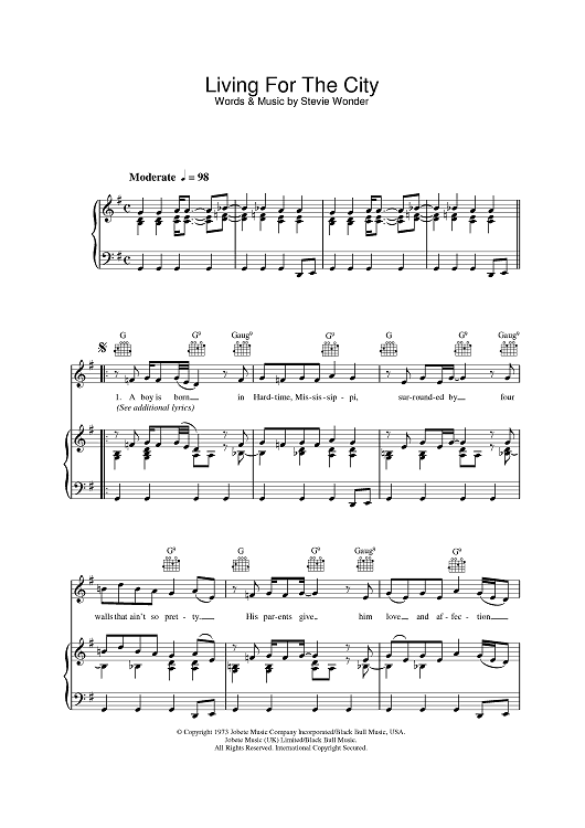 Digital Sheet Music for Living For The City by Stevie Wonder scored for Piano/Vocal/Chords; id:389983