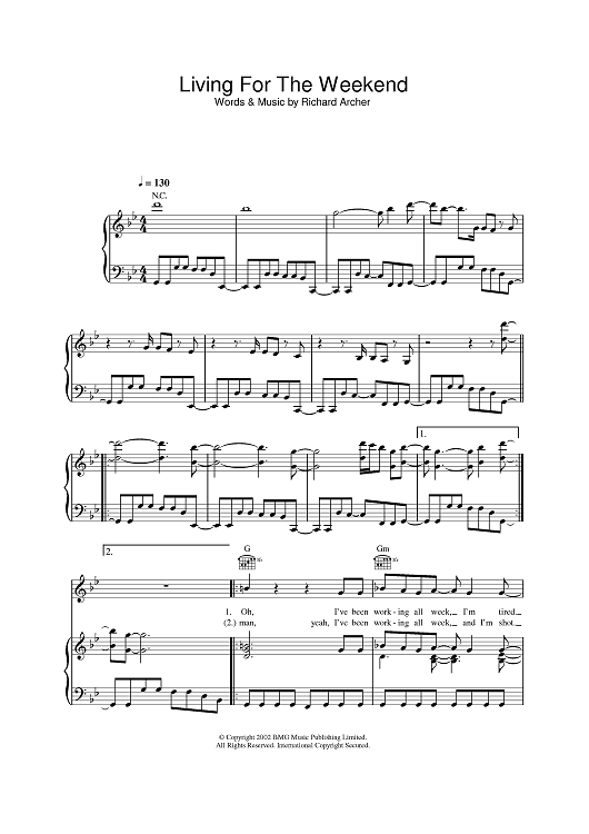 Digital Sheet Music for Living For The Weekend by Richard Archer, Hard-Fi scored for Piano/Vocal/Chords; id:386888