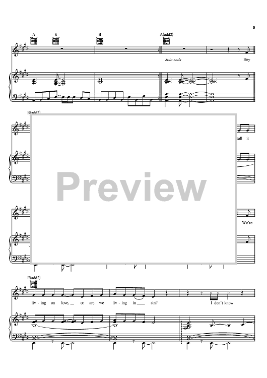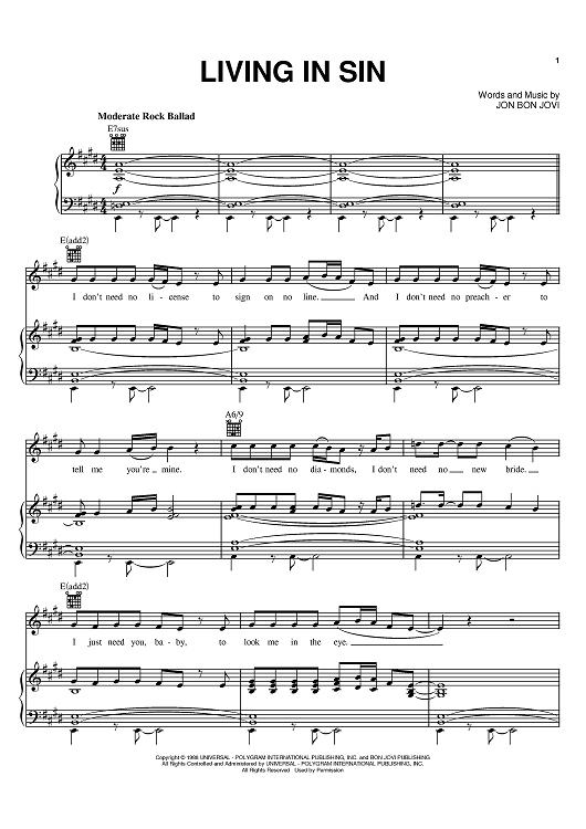 Digital Sheet Music for Living In Sin by Bon Jovi, Jon Bon Jovi scored for Piano/Vocal/Chords; id:383550